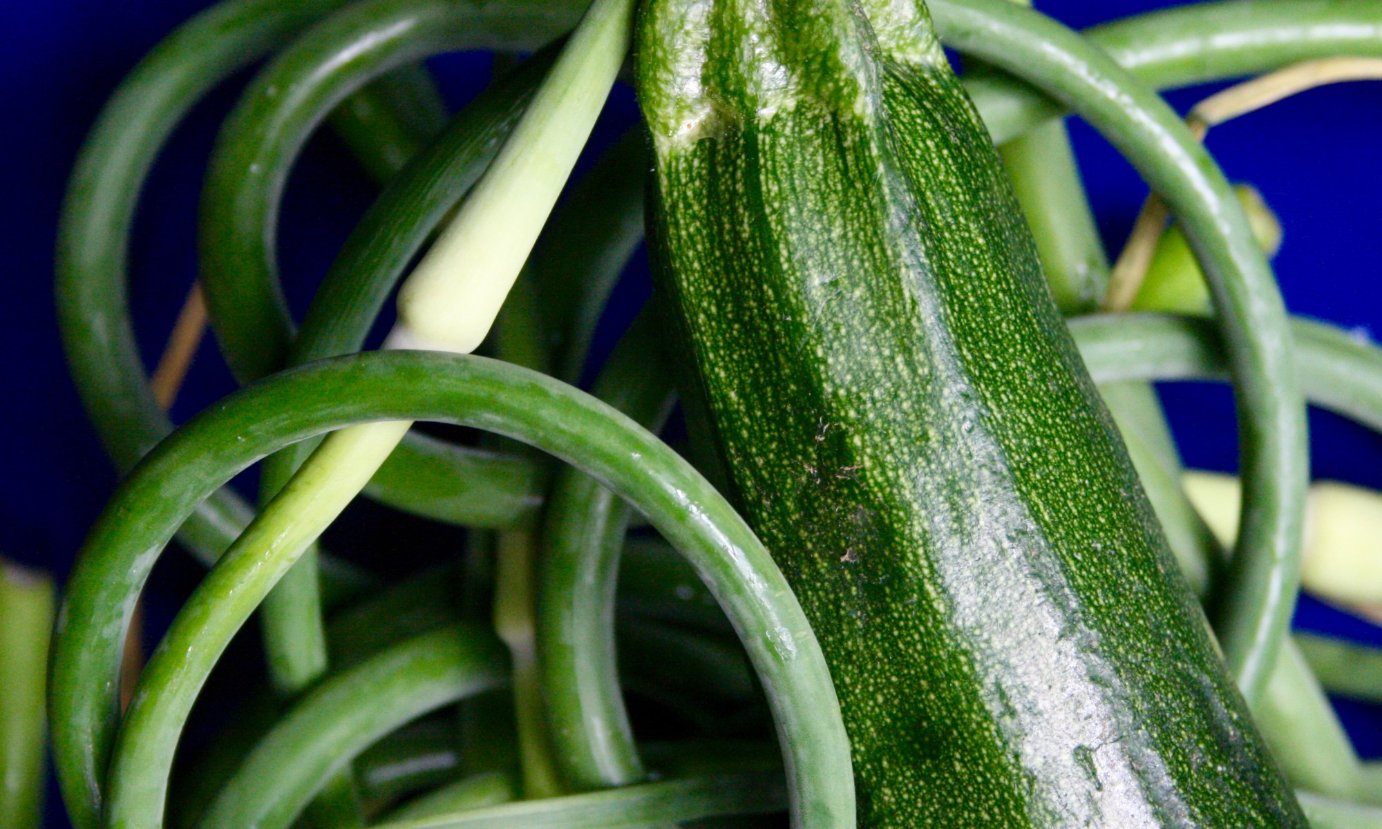 Couper les fleurs d’ail en tronçons et les courgettes en morceaux
