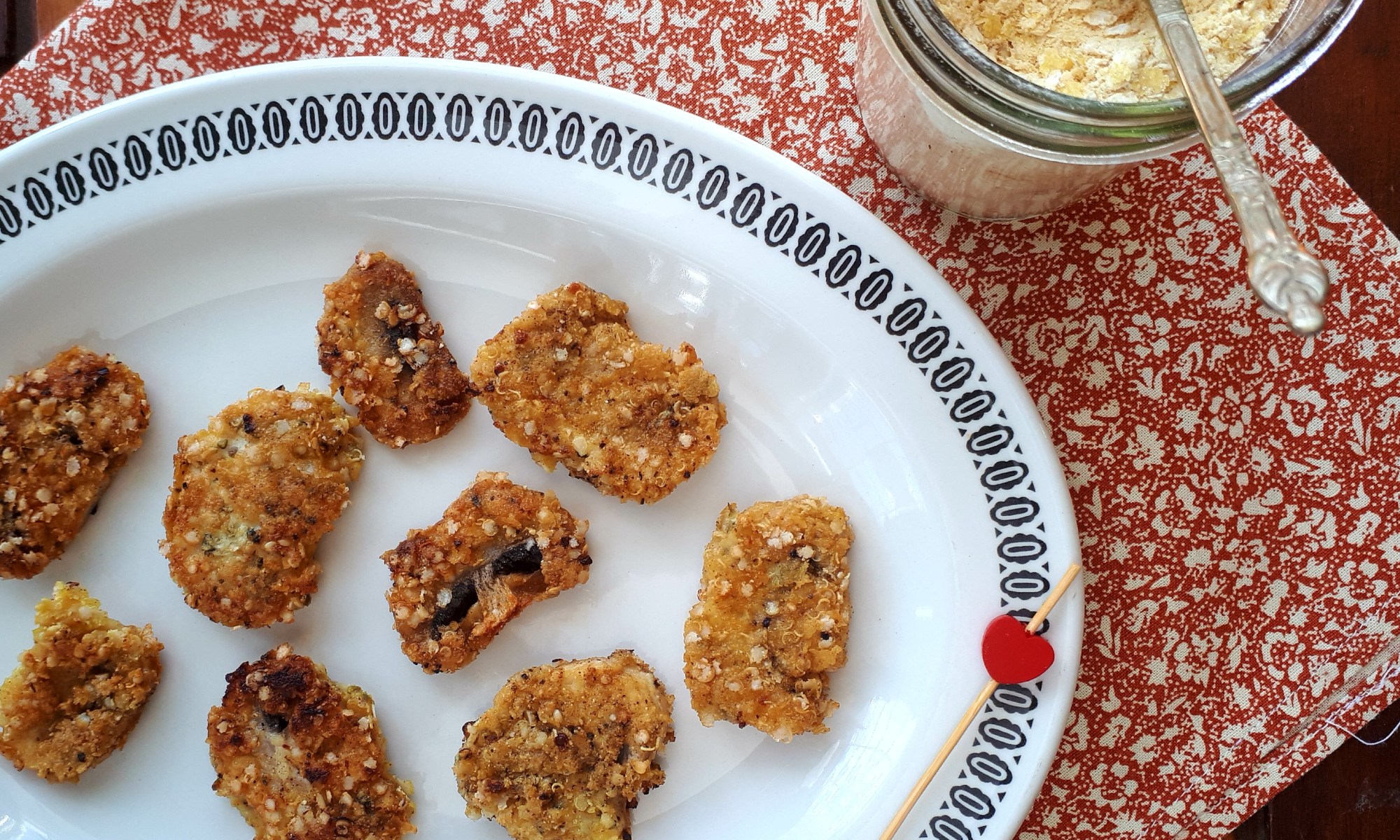 On en prépare un gros pot et on l’utilise partout ou on demande de la panko ou de la chapelure. Comme exemple le tofu ou le tempeh popcorn, les rondelles d’oignons , le chou-fleur BBQ ou encore les champignons panko (photo ci dessous).