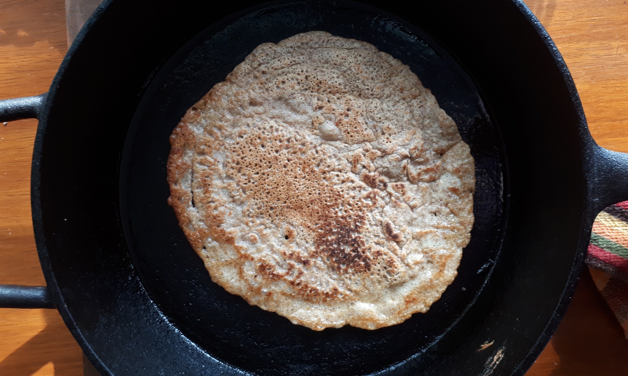 Faire les crêpes dans un poelon en fonte à feu moyen élevé avec un peu d’huile**.
